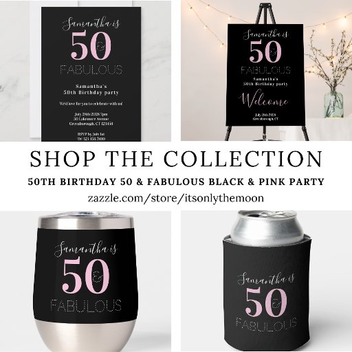 50th Birthday 50 and Fabulous Black Pink PartyDesignad av Only The Moon