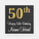 Den här sofistikerade, lyxaktiga och snyggt-födelsedagstecknet papper napkin-design har ett stort ordnummer "50:e" med en imitation/faux guld-liknande gradient mönster, utöver födelsedagstecknet "Lycklig 50:e födelsedagen" och ett anpassade namn i ett skript-hälsning teckensnitt. Bakgrunden är svart på färgad. Sofistikerade pappra servetter som denna kan användas när man är värd för ett party för någon i firande på deras 50-årsdag. [~Z0000516]
