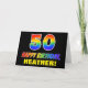 Framsidan av denna glada, färgstarka och roligt födelsedag med hälsningskortet har ett stort nummer "50" och meddelandet "GRATTIS PÅ FÖDELSEDAGEN,", båda färgader med en regnbågsspektrumövertoning som inspirerade mönster, tillsammans med en fet gult personlig mottagare namn. På framsidan finns också en vanlig, enkel, svart färgad. Insidan innehåller ett hälsning-meddelande från personligens födelsedag, eller kan kanske tas bort och lämnas tomt om ett meddelande ska skrivas för hand i stället. Ett sådant här muntert födelsedagskort för personlig kan vara ett roligt sätt att erkänna någons femtioårsdag. [~Z0000472]