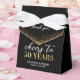 Tack för vuxens födelsedag: lådor med en snyggt svart bakgrund, faux guld glitter, ordspråket "fuskar till 50 år", deras namn och datumet för party.