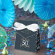 50:e födelsedagsblått och guld enkel elegant moder presentaskar