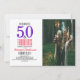 Modern, 50-årsfotoinbjudan som du kan anpassa och skicka ut för din 50-födelsedagsfests firande. Ord 50 och Fabulous är inställda med populär typografi. Byt ut exempelfotot mot ett eget. Färgen röd och svart text kan ändras på Redigera-menyn. En multifärgad chevron mönster lägger till baksidan av kortet. Andra färg och mönster finns tillgängliga.
