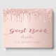 En gäst bok för en girig och glamorös 50:e födelsedagsfest. Ett faux ro guld-bakgrund med en elegant faux ro guld glitter drops, målardroppstift. Texten: namn och titeln: Gäst Bok är skriven i mörk ro guld med ett modernt handskript i stil. Tempera för ett datum och 50 år.