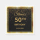 En napkin för en elegant svart och guld temat 50:e födelsedagsfesten. Mallar för namn, ålder och datum för party. Golden färgad brev. Den svarta bakgrunden färg och faux guld ram. Med klassiskt snurrande och gyllene konfetti regn, duscha. Bakgrunden är genomskinlig så att du kan ändra färg så att det matchar ditt tema.