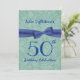 Den här designen med sin blå faux-tryckta båge och sin grönt-dammbakgrund är en elegant till inbjudan till 50-årsfirandet. All text är helt anpassade. Du kan experimentera med olika papprare typer genom att klicka på fliken "Inbjudningsalternativ" i det övre högerna. Jag rekommenderar den metalliska papper som kommer att ge ge din inbjudan till en festshimmer och shine.
