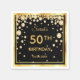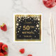 En napkin för en elegant svart och guld temat 50:e födelsedagsfesten. Mallar för namn, ålder och datum för party. Golden färgad brev. Den svarta bakgrunden färg och faux guld ram. Med glamorösa faux gyllene diamanter. (inga verkliga diamanter) Bakgrunden är genomskinlig så att du kan ändra färg så att det matchar ditt tema.