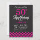 50:e födelsedagsinbjudan Svart och Shock rosa Inbjudningar