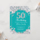 50:e födelsedagsinbjudan Teal och Silver Diamond Inbjudningar
