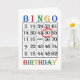 50:e födelsedagskortet. Säg Grattis på födelsedagen till en bingo-spelare med ett bingo-kort. Åldern är röd. En bingo-galen spelare kommer att få en enorm spark ur det här kortet! Copyright Norma Cornes.