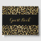 Visa gästerna en gäst bok till minne av din speciella natt med gästen bok med en svart bakgrund med guld leopard print gräns.