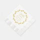 Vita pappra blöjor för ett 50-årsjubileum på Golden Bröllop som har en utandningsplan för vivlet guld med årsjubileet namn och bröllop med anledning av jubileumsdagen i ett skript från guld färg. Redigera och ersätt namn och bröllop efter behov. Markera din pappra napkin stil.