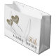 Personlig 50:e årsdagen av Golden Bröllop-presentpåsen. Perfektens gåva till par, mor- och farföräldrar, föräldrar eller vänner som firar femtio år av giftermål. Den uppvisade konstruktionen har två guld-ballonger med plats för namnen make och hustru. Matchningskort och gåvor som kopp och underlägg finns också tillgängliga i denna moderna och söt utformning.