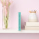 Customize with your own photo and personalize the name, birthday party date, and text. The teal and black text colors can be changed by clicking the "Customize" button. A geometric black and white meander pattern with diamonds and zigzags adorns the back cover of the book. Other colors and patterns are available.