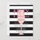 Svarta och vita Rand med Rosa glitter champagneglas. Redot 50:e och Fabulous 50:e designmall för Födelsedagsfest så att du kan fylla i dina party-uppgifter.