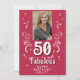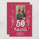 50 och Fabulous Foliage Magenta 50:e födelsedagsfotokortet. 50 och fantastisk text i trendigets vita skript med namn och vit löv på en levande magenta bakgrund. Anpassa den med ditt foto, ditt namn och din ålder. Lägg till texten på baksidan av kortet eller radera den.