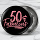 50 & Fabulous Rosa Glitter 50:e Gnistran på födelsedagen Buttons har den moderna textdesignen "50 & Fabulous" i calligraphy script på rosa glitter. Perfekt för en 50:e födelsedagsfest eller firande.