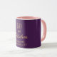 Enkel och elegant 50-årsdagen mugg. Chic och bakgrunden till Lila av feminin mörk i färg. Med texten: 50 och fantastisk. Mall för namn och datum. Golden brev.