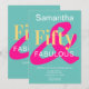 Det här är en smart och modern 50-årsdesign med femtio och fantastiska typografimotiv. Den är i skarp och djärv shock rosa, grönt och gult med snyggtens typografi. Det innehåller meddelandet "Samantha Fifty & Fabulous" med utrymme för att lägga till din party- och OSA-information på framsidan. På baksidan upprepas typografimotivet tillsammans med budskapet "Låt oss fira!" Perfekt för chic 50:e födelsedagsfesten firande. Om du vill anpassa dig lägger du bara till namn, party och OSA med hjälp av den här textrutan. Om du vill ändra färg eller teckensnitt checkar du ut redigeringsverktyget verktyg. Om du vill ha hjälp med att anpassa, matcha produkter eller ett anpassad design-e-postmeddelande: ursuladawnmoon@gmail.com