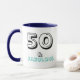Fira 50-årsdagen och födelseåret med denna 50-faldiga kaffe mugg. Den har mörk blått handtag och är mörk blått inuti, med text i svart och turkosa blå, på vit bakgrund. I texten står det "50 & Fabulous". Det är en fin 50-årsdag för att fira 50-årsjubileet! Ge som en gåva eller skaffa den åt dig själv. Vissa alternativ kan vara personlig/anpassning.
