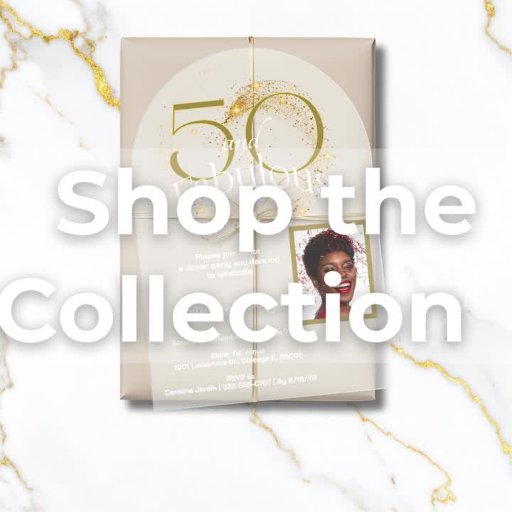 Kombinationen av vit kalligrafi i elegant och enkel typografi på en svart bakgrund med guld accent färg visar på en milstolpe på 50 års födelsedag på en marmorsten som underlägg vackert. Du kan anpassa det med namn för dig själv eller ge till familj och vänner.