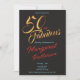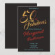 En vacker, modern, 50-års inbjudan som du kan anpassa och skicka ut för din femtioårsfirande. Orden "Femtio och fantastisk" är satta med populär typografi i stilfullt guld och rött. De röda och turkosa textfärgerna kan ändras med hjälp av redigeringsmenyn. En klassisk solid svart pryder baksidan av kortet. Andra färger och mönster finns tillgängliga.