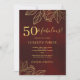 Vintagen för lyxfri elegant inspirerade 50:e födelsedagsfest inbjudan-mallen med löv foliage och ett typografiskt skript i snyggt guld på en mörk röd burgundisk antik bakgrund i nöd. — inbjudan lämpar sig för alla födelsedagsfester av årstidsdelstenar - 30, 40, 50, 60, 70, 80, 90, 100 - eller andra årsdagar för firande. ++++++++++++ Det är helt redigerbart och enkelt att anpassa med dina uppgifter!