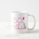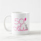 För den sagolika kattälskare som är roterande 50. En rolig design som firar denna födelsedagmilstolpe! En avbilda av ett ljust - grått- och rosakatträckvidder för en rosa ballong, som den seglar bort. Stilsorten är shock rosa som betonar denna roligt yet elegant design.