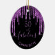 Ett trendig och en glamorös 50-årsdagars prydnad. En klassisk svart bakgrund som dekoreras med mörkens lila färgad faux glitter drops, färgdropputseende. Med texten: 50 och fantastisk. Anpassa och lägg till ett namn. Lila färgad text. Ord Fabulous är skriven med ett modernt handskript i stil med dekorationer. Perfekt som gåva, partiförmån eller som party bord som dekoration.