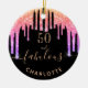Trendig och glamorös för 50-årsdagen. En klassisk svart bakgrund som dekoreras med regnbåge färgad faux glitter, färgdroppstift i lila, rosa och ro guld. Med texten: 50 och fantastisk. Anpassa och lägg till namn och ålder. Golden färgad text. Ord Fabulous är skriven med ett modernt handskript i stil med dekorationer.