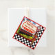 Uppsättning med 12 kvadratfavärden med en bild med 50-sekundersreflextecken som lyder: "Tack för att du kommer", en röd middag och en femtiosekundersserver i vintagen på en svart kontrollpanel med ett rött gräns. Baksidan har samma bild som framsidan med anpassadet text. Se hela Niftio 50s-samlingen för favoritsäck och Märkre för gift i avsnittet PARTY FAVORS.