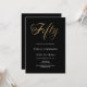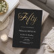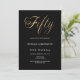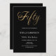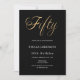 A modern, stylish invitation for a 50th birthday party for both him and her. Black background and the word Fifty written with large faux gold letters. Personalize and add a name and party details.