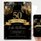 50th Birthday Invitation Template: Black Gold Balloons (Digital Download)