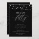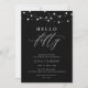 Celebrate a milestone birthday with this elegant Hello Fifty 50th birthday invitation. Designed in classic black and white, this modern invitation features refined typography and graceful script accents with subtle white glitter and soft string lights for a classy, adult look. The simple, polished layout makes it perfect for a sophisticated celebration.