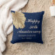 Underbar elegant gåvaidé för en koppla ihop som firar femtio år av giftermål! Pillow är designad med marinblå bakgrund för anpassadet, och ett stort guld- caladiumlöv är på vänster upper tränga någon beklär sidan. "Skrivar årsdagen för lycklig 50th" i flott och parnamn med årsdagåret som centreras på bekläda.