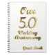 Vår anteckningsbok för spiral för party för årsdag för guldbröllop för vit för typografi för 50th bok för bröllopsdagpartygäst chic eleganta guld-