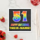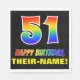 Den pappra napkindesignen för färgstark, glad och roligt har ett stort nummer "51" och meddelandet "GRATTIS PÅ FÖDELSEDAGEN,", som båda har en regnbågsspektrumövertoning som inspirerar mönster, tillsammans med en fet gult-anpassningsbar-mottagare namn. Bakgrunden är svart på färgad. Roligt, skräddarsydda pappra servetter som detta kan användas vid en party som hålls för att fira någons 51-årsdag. [~Z0000476]