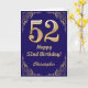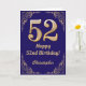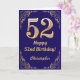 52:a födelsedag Blått och Guld Glitter Ram Kort