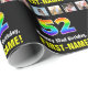 Den pappra designen med ett stort nummer "52" med ett multifärgat regnbågsspektrum som inspirerar till gradient mönster, plus meddelandet "Lycklig 52:a födelsedagen" och en anpassningsbar mottagare namn. Det finns även foton som kan vara personlig, kanske med foton av mottagaren, mottagarens familj och vänner och/eller presentens avsändare. Att packa pappert som detta kan vara ett roligt för att packa en födelsedagspresent eller gåva till någon som firar sin femtiosekundersfödelsedag. (Photography © Storytree Studios, Stanford, CA.) [~Z0000670]