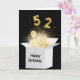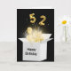 Guld-ballonger och mousserande ljusstrålar i en vit låda på svart bakgrund under 52 år