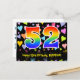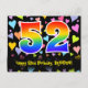 Framsidan av denna kärleksfulla, färgglada och roliga födelsedagsteman postkort design har ett stort nummer "52" med ett regnbågsspektrum gradientinspirerat mönster. Den har också meddelandet "Grattis på 52-årsdagen," och ett anpassningsbart mottagarnamn. Framsidan har dessutom ett livfullt och färgglatt mönster av kärleksfulla hjärtan. Baksidan har ett anpassningsbart födelsedagsgratulationsmeddelande, eller kan eventuellt rensas och lämnas tomt om ett meddelande ska skrivas för hand istället. Ett personligt födelsedagskort som detta kan vara ett roligt sätt att skicka ett meddelande för att fira någon:s femtioandra födelsedag. Postkort som detta kan också användas för att bjuda in gäster till en födelsedags
