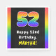 This cheerful and upbeat birthday-themed paper napkin design features the number “52“ with a vibrant multicolored rainbow spectrum inspired gradient pattern, along with the message “Happy 52nd Birthday,”, and a customizable recipient name. Joyful paper napkins like these might be used when hosting a party for somebody in celebration of their 52nd birthday. [~Z0000629]