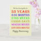 53-årsjubileum med uppgifter om år, dagar, månader, timmar och minuter som du har varit gift med. Lustigt, men med en romantisk vers inuti. Ett kort till tankepaus i ge! Man har tagit hänsyn till läderåren!