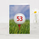 Vit golf boll på rött gräs i 53 år. Åldersnumret på golf boll kan ändras.
