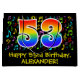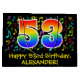 Den här roligten, den färgstarka och klara presentsäcksdesignen för födelsedagspressar har ett stort nummer "53" med en regnbågsspektrumövertoning som inspirerade mönster, tillsammans med meddelandet "Lycklig 53:e födelsedagen" och ett eget namn. En del av bakgrunden har ett färgstarkt musik noter och symboler mönster. En matad presentsäck av det här slaget kan användas när man ge en gåva eller present i firande på någons 53-årsdag. [~Z0000425]