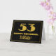 Framsidan av det här vintagen, 1920-1930-talet, inspirerade stil till den matematiska hälsningskortsdesignen med ett stort konsthugge-utseende inspirerat nummer "53", meddelandet "GRATTIS PÅ FÖDELSEDAGEN,", ett anpassade namn och ett gräns mönster som består av linjer. På framsidan finns också en bakgrund med svart färgad. Insidan innehåller ett hälsning-meddelande från anpassadets födelsedag, eller kan kanske tas bort och lämnas tomt om ett meddelande ska skrivas för hand i stället. Ett sådant här födelsedagskort i personligen kan vara ett roligt för att erkänna någons femtiotredje födelsedag. [~Z0000506]