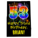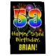 Den här färgstarka, roligt- och spännande presentsäcksdesignen med födelsedagstext har ett stort nummer "53" med en regnbågsspektrumgradient stil mönster, tillsammans med meddelandet "Lycklig 53:e födelsedagen" och en anpassningsbar mottagare namn. Den har också en färgstark bakgrund i mönster som inspirerats av brinnande fyrverkerier. En presentpåse som denna kan användas när en gåva eller present ge till heder för någons 53-årsdag. [~Z0000509]