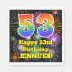 Den här roliga och roligt-födelsedagskalan med den pappra napkindesignen har ett stort nummer "53" med en färgstark regnbågsspektrumövertoning som inspirerade mönster. Det innehåller också meddelandet "Lycklig 53:e födelsedagen" och ett eget namn. Bakgrunden är ett flerfärgat mönster som inspirerats av brinnande fyrverkerier. Födelsedag med pappra servetter som detta kan vara ett roligt sätt att fira någons 53-årsdag. [~Z0000574]
