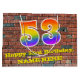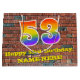Den här roligten och den pulserande födelsedagskalans presentsäck, inspirerad av graffiti, har ett stort nummer "53" med en regnbågsspektrumövertoning som inspirerade mönster, tillsammans med meddelandet "Lycklig 53:e födelsedagen" och ett anpassade namn. Den har också en tegelvägg stil mönster som bakgrund. En färgfull matsäck i julklapp som den här kan vara ett roligt sätt att figurera en gåva eller gåva som ges till någon som firar sin 53-årsdag. [~Z0000522]