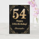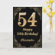 54:e födelsedag Svarta och Guld Glitter Ram Kort