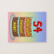 Denna glatta och roligt-pusselpussel har en tecknad-stil-bild av en treskiktad födelsedagskalas med sifferformade ljus ovanpå som visar åldern 54 år, tillsammans med meddelandet "LYCKLIG 54:e BIRTHDAY," och ett anpassade-mottagare namn. Bakgrunden har ett monteringsspektrum för pastellregnbåge med flera färg inspirerad gradient mönster. Ett muntert munkavle på personligens födelsedag som det här kan vara ett roligt för att skicka födelsedagstävlingar till någon som firar sin femtiofjärde födelsedag. [~Z0000621]